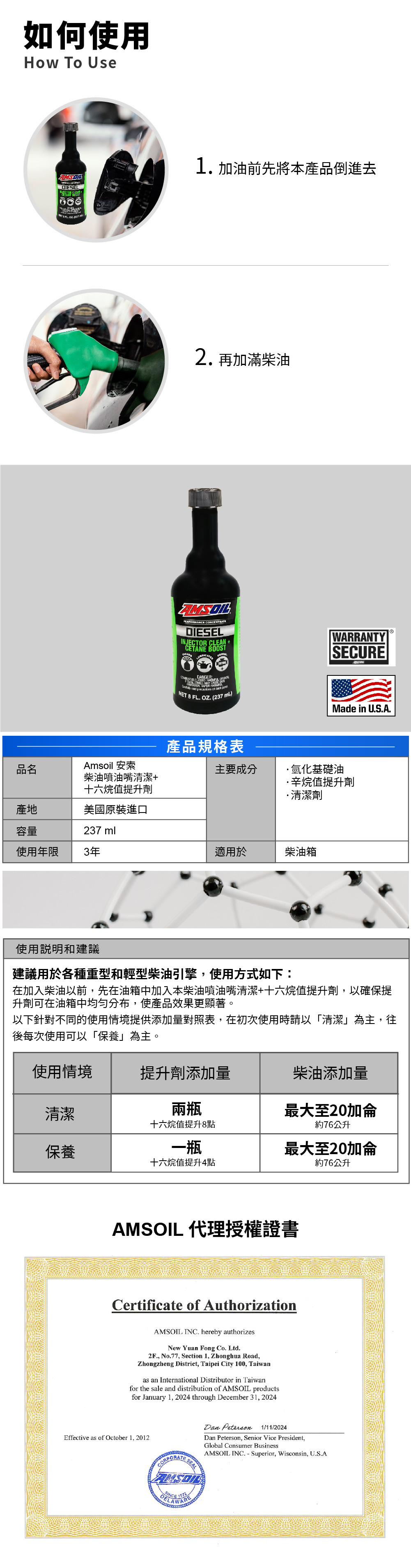 • 補充燃油泵和噴油嘴之潤滑,減少磨損