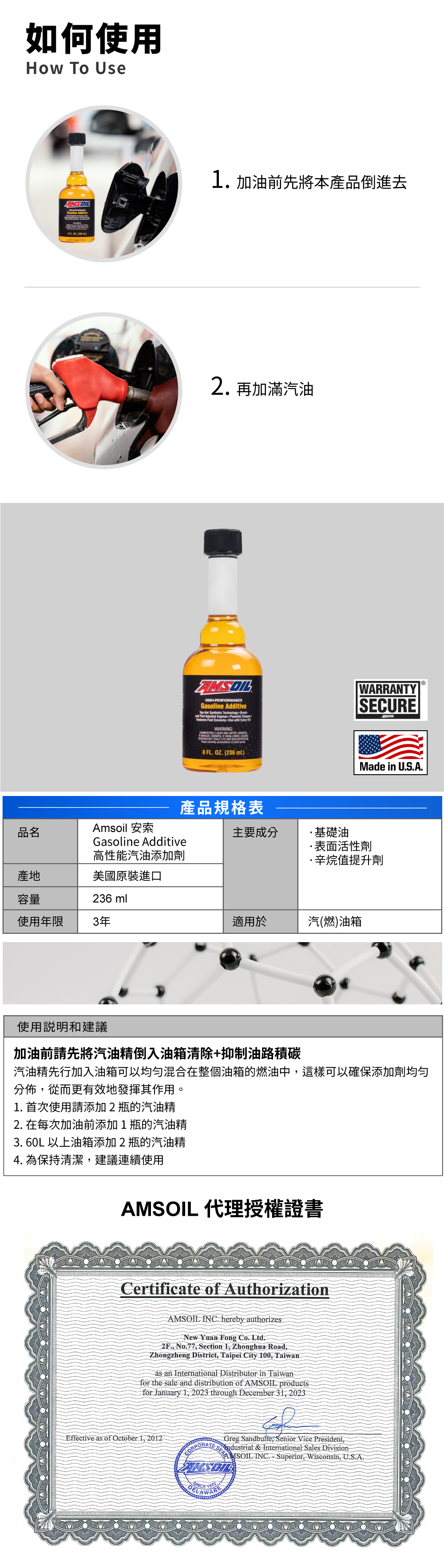 • 可改善引擎爆震聲