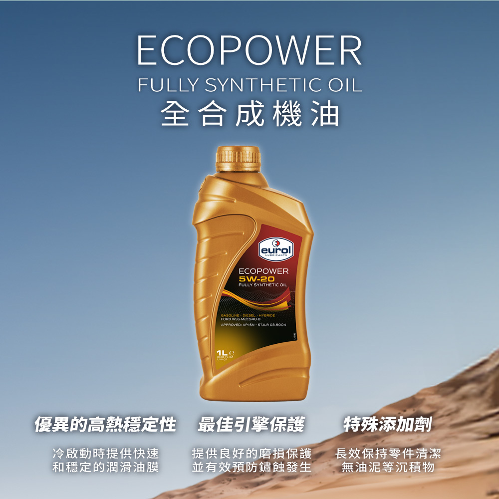Eurol Ecopower 5W20是一款適用於最新福特 EcoBoost 引擎的全合成潤滑油。亦可用於規定使用 ACEA A1/B1 或 API SN 規範的所有汽油車輛,其低黏度特色可提供優秀的燃油經濟性。