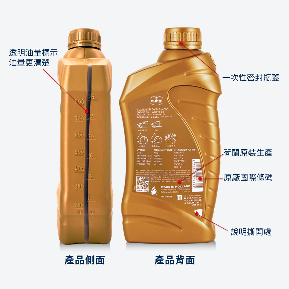 Eurol Fluence DXS 5W30 不僅提供絕佳的磨損保護,還能防止零件生鏽和氧化。其特殊的添加劑配方可在極長的換油週期内保持引擎清潔,免受污垢、油泥和沉積物的侵害。