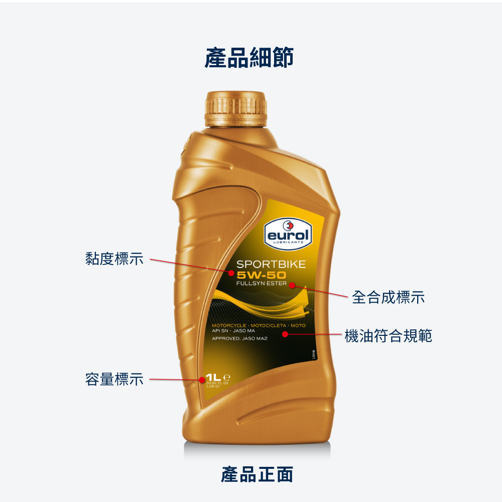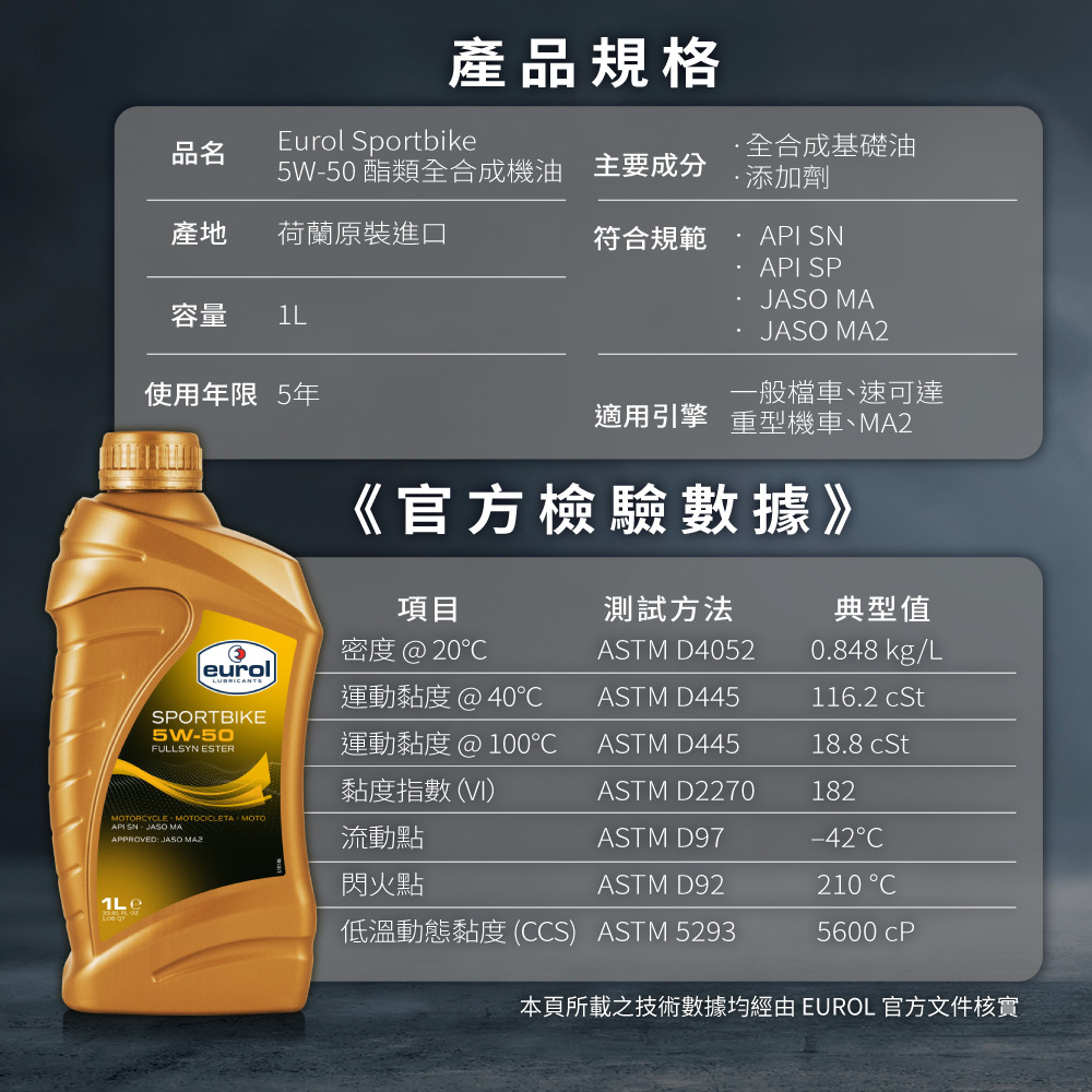 品名:Eurol Sportbike 5W-50 機車用酯類全合成機油