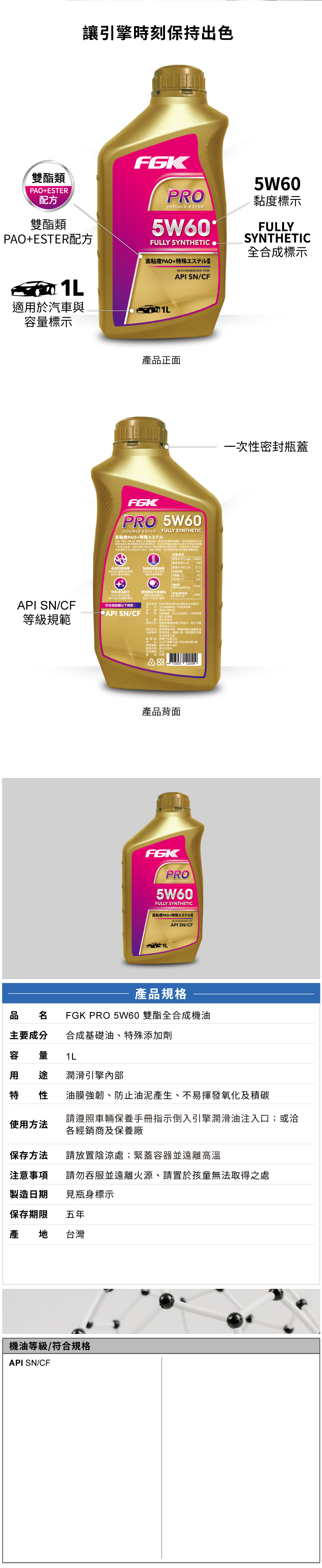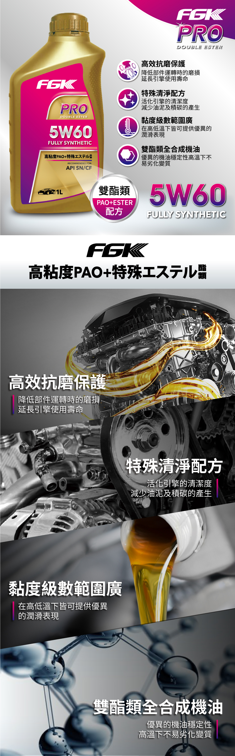 • 雙酯類全合成機油 - 優異的機油穩定性高溫下不易劣化變質