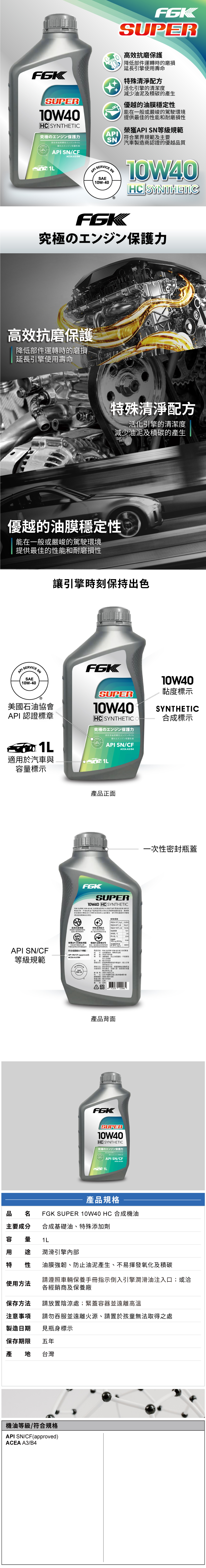 • 榮獲API SN等級規範 - 符合業界規範及主要汽車製造商認證的優越品質