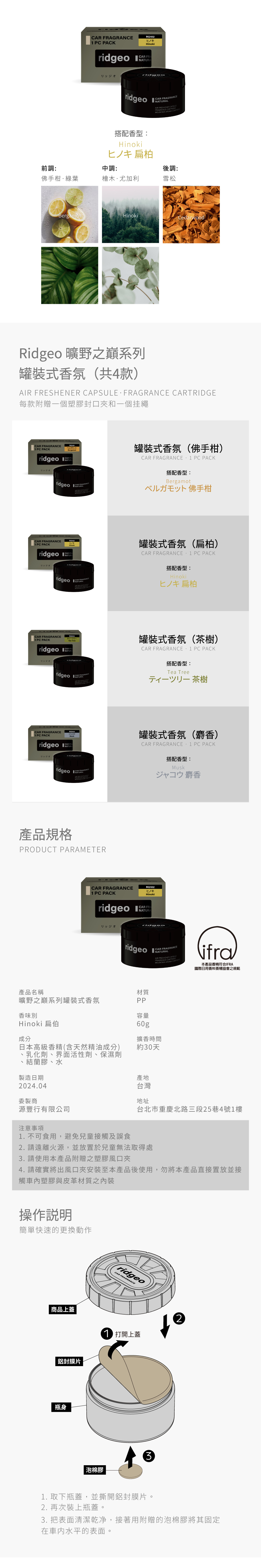 RIDGEO 瑞吉歐 曠野之巔系列罐裝式香氛-扁柏