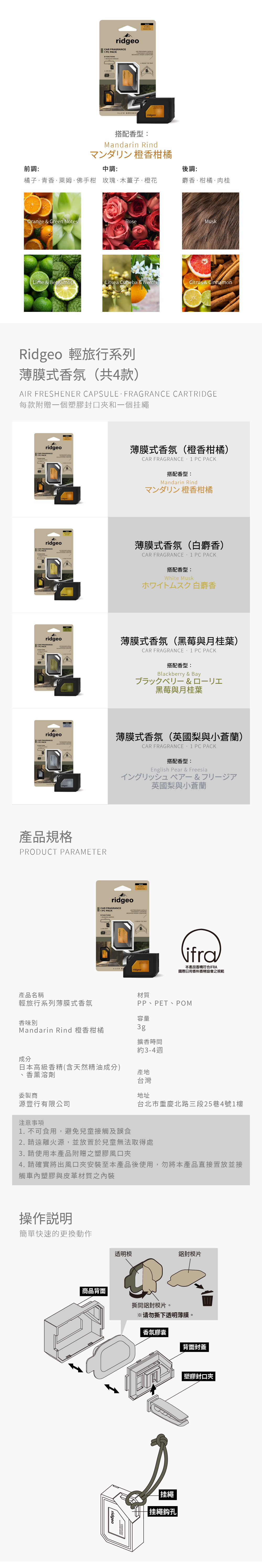 RIDGEO 瑞吉歐 輕旅行系列薄膜式香氛-橙香柑橘