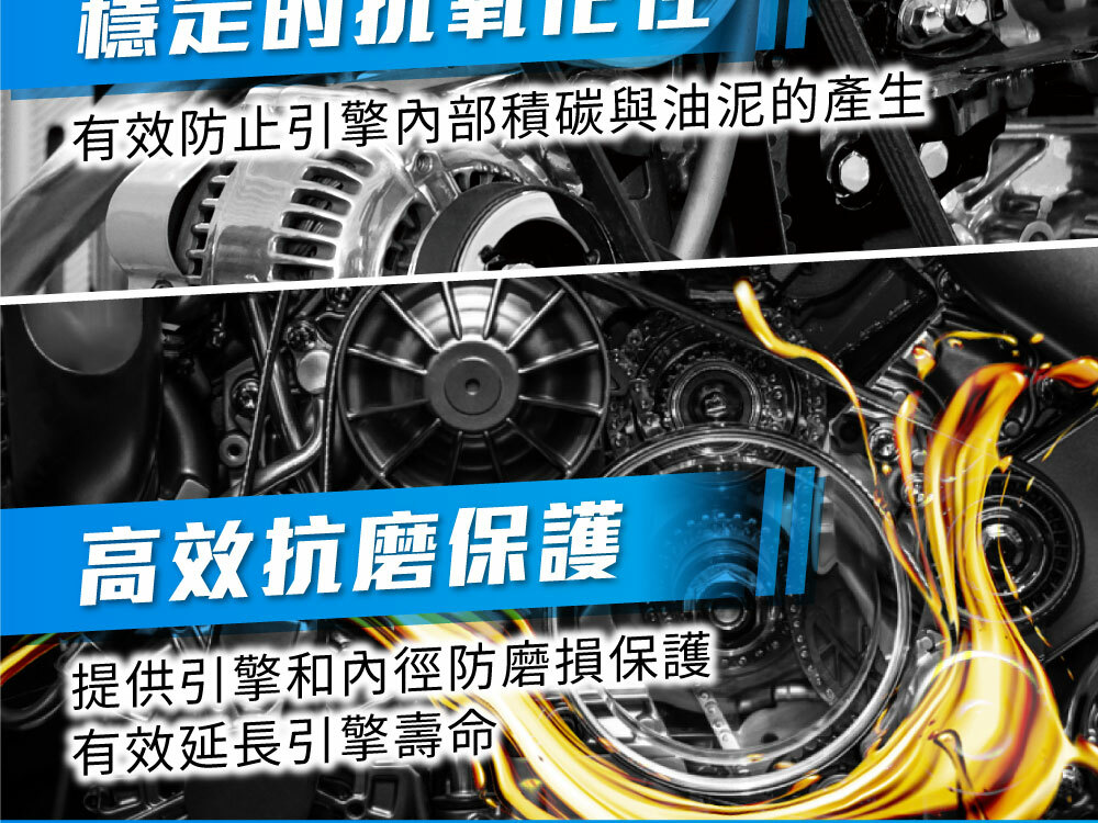 · 穩定的抗氧化性,有效防止引擎內部積碳與油泥產生