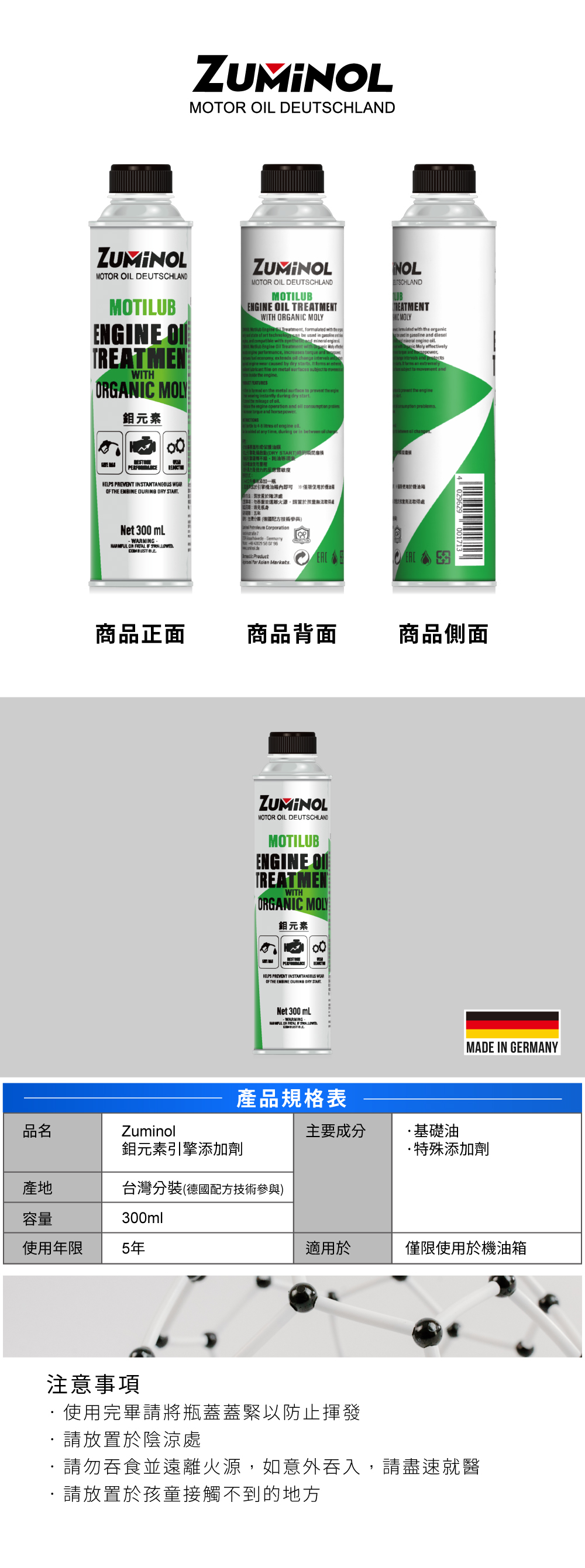 Zuminol 鉬元素引擎添加劑 300ml